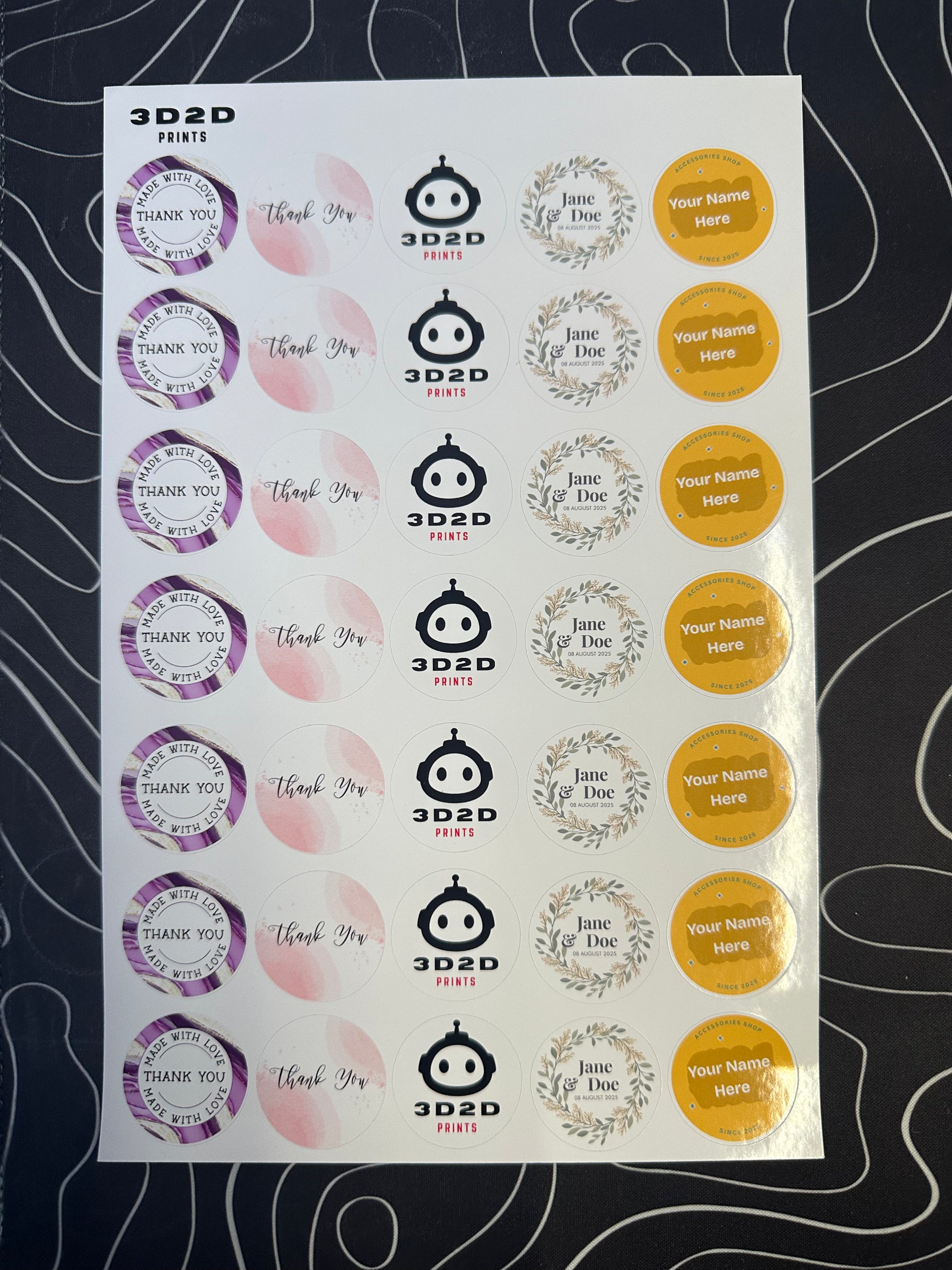 Custom made stickers made out of a semi-waterproof vinyl sticker paper. Please upload high resolution images and describe how many of that picture you would want in the requirements box - etc "2x img1, 4x img2 and 6x img3".